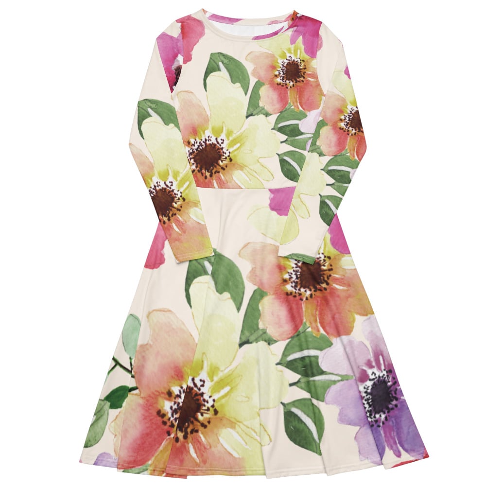 All-over print long sleeve midi dress
