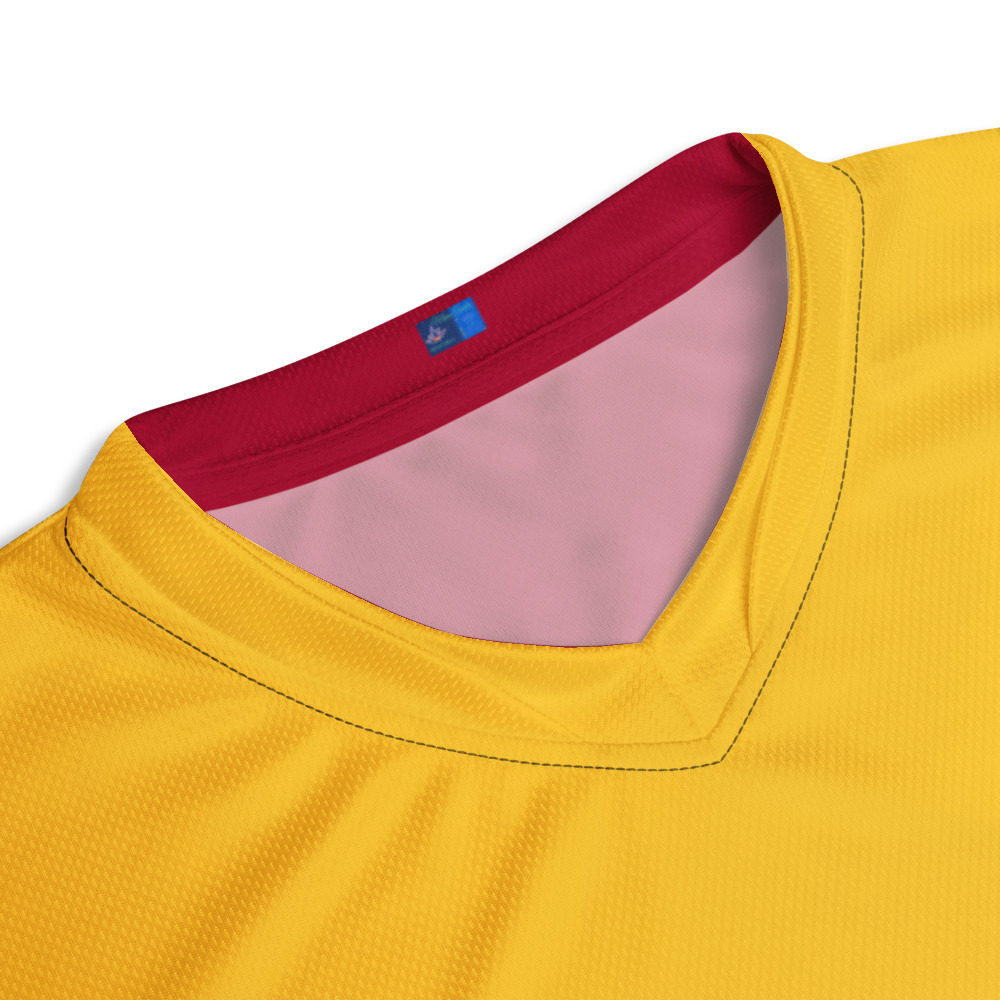 Looking for the perfect sports jersey? We have you coveredmade of 100% recycled polyester fabric, this shirt is breathable, moisture-wicking, and has a double-layered v-neck collar that creates a premium look.